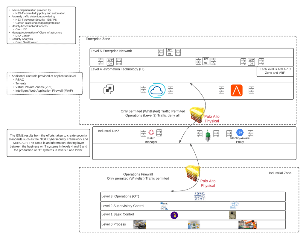 Disclaimer: I did not depict the internet DMZ; this architecture is based on the Purdue model but is not certified by any regularity governance body.